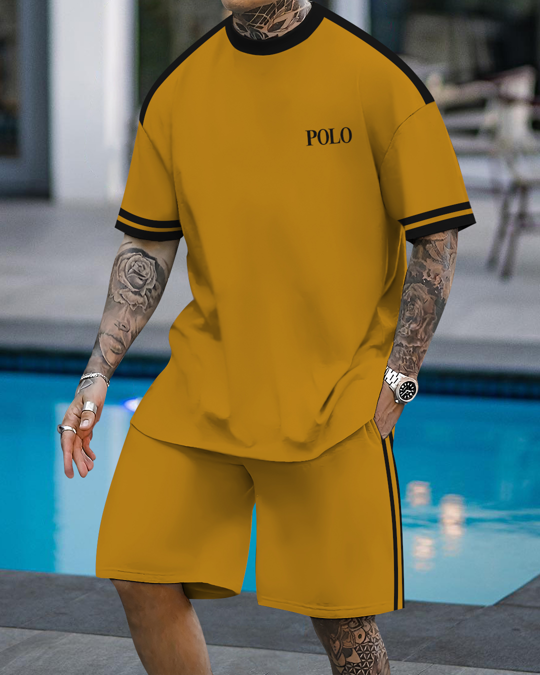 Men's fashion casual color matching printed short-sleeved two-piece set